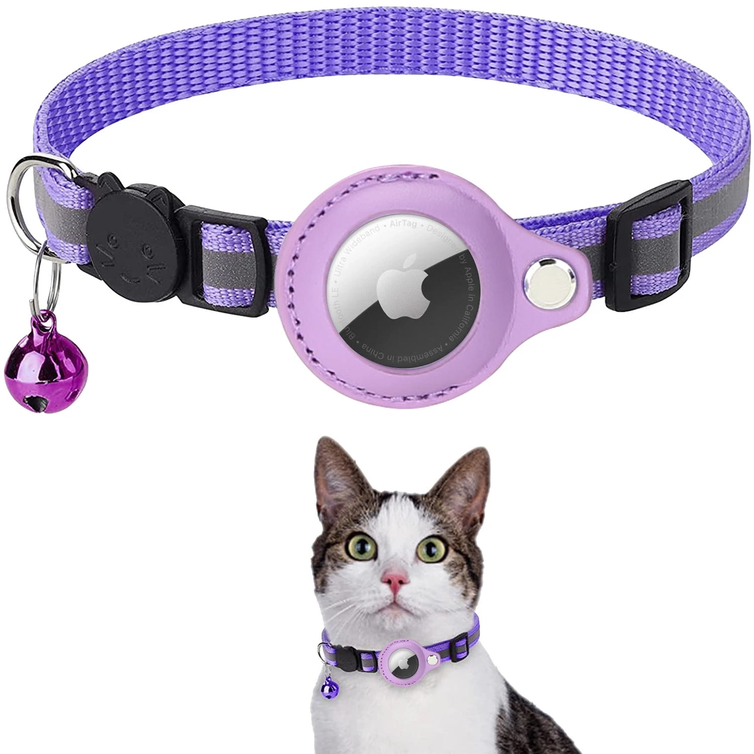 Crafted from high-quality materials, this cat tracker collar is not only stylish but also comfortable for your cat to wear. It’s built to withstand daily adventures and outdoor escapades. The collar is fully adjustable, ensuring a snug fit for cats of all sizes. Whether you have a sleek Siamese or a fluffy Maine Coon, our collar will fit them comfortably. The safety of your cat is our top priority. The collar features a quick-release buckle that ensures your cat can break free if they get caught on something, preventing injuries. Our Apple Airtag Cat Collar comes in a variety of trendy colours with matching bells, allowing your feline friend to flaunt their fashionable side.