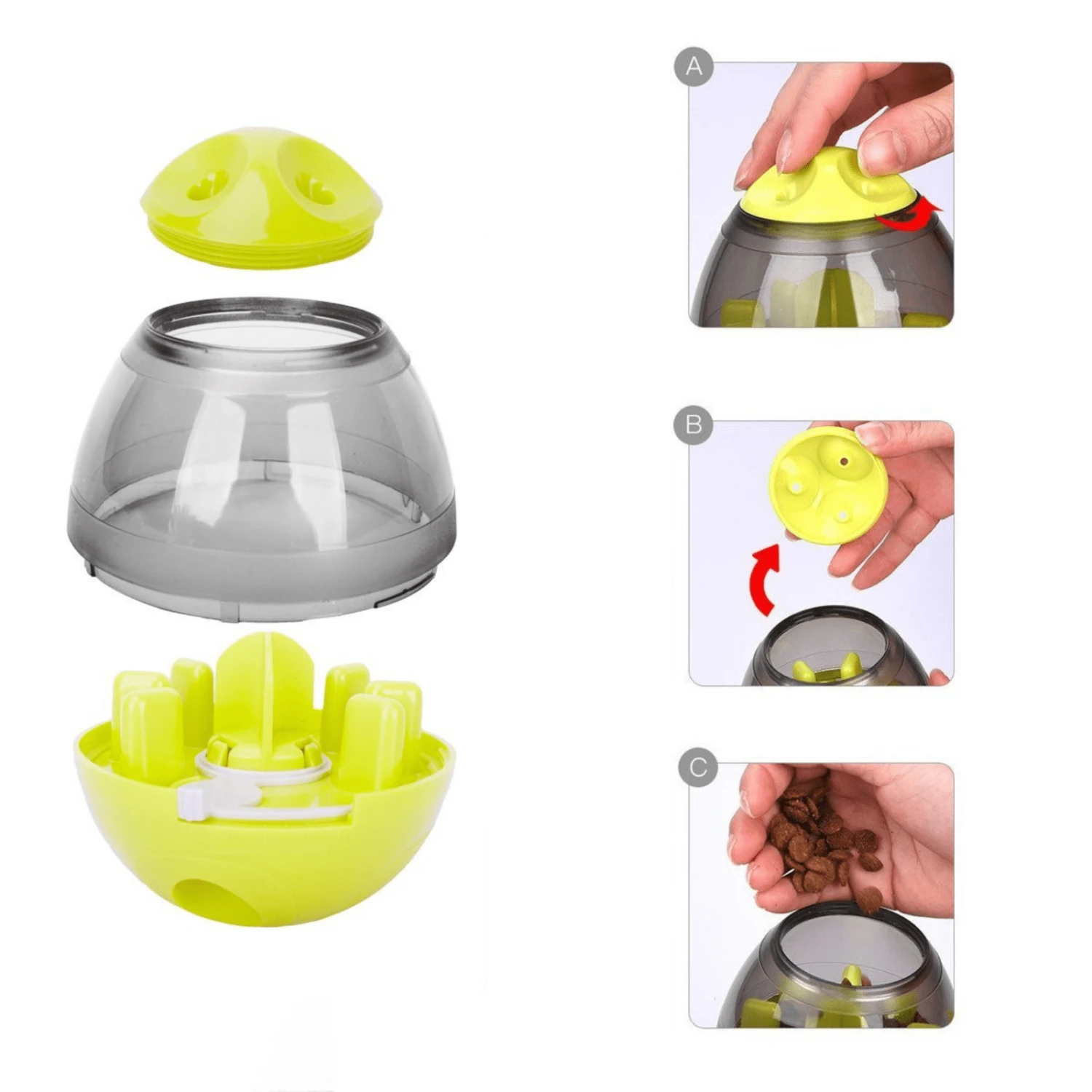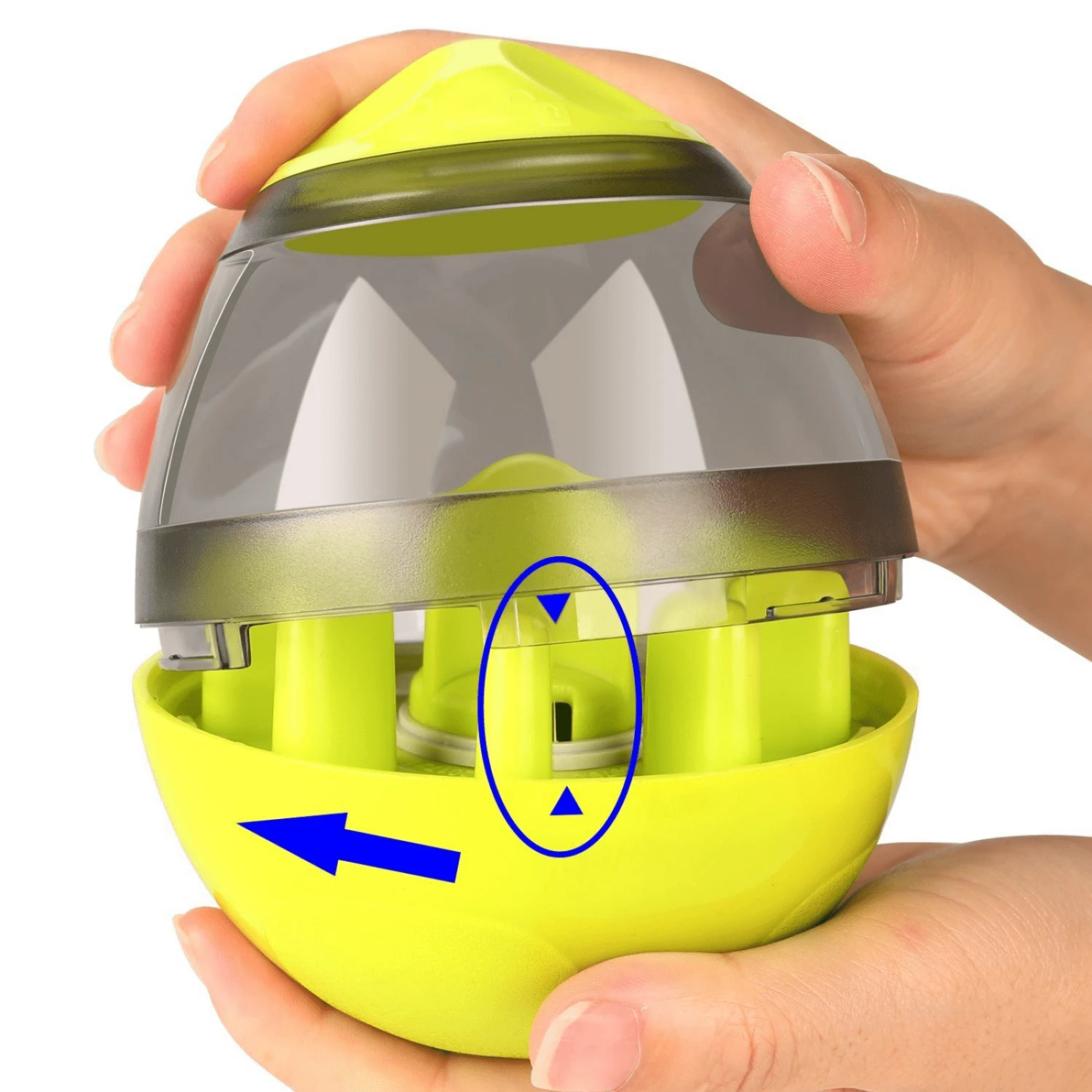 - The food outlet size is adjustable to allow you to control the treat depletion rate and makes this toy suitable for most kibble shapes and sizes