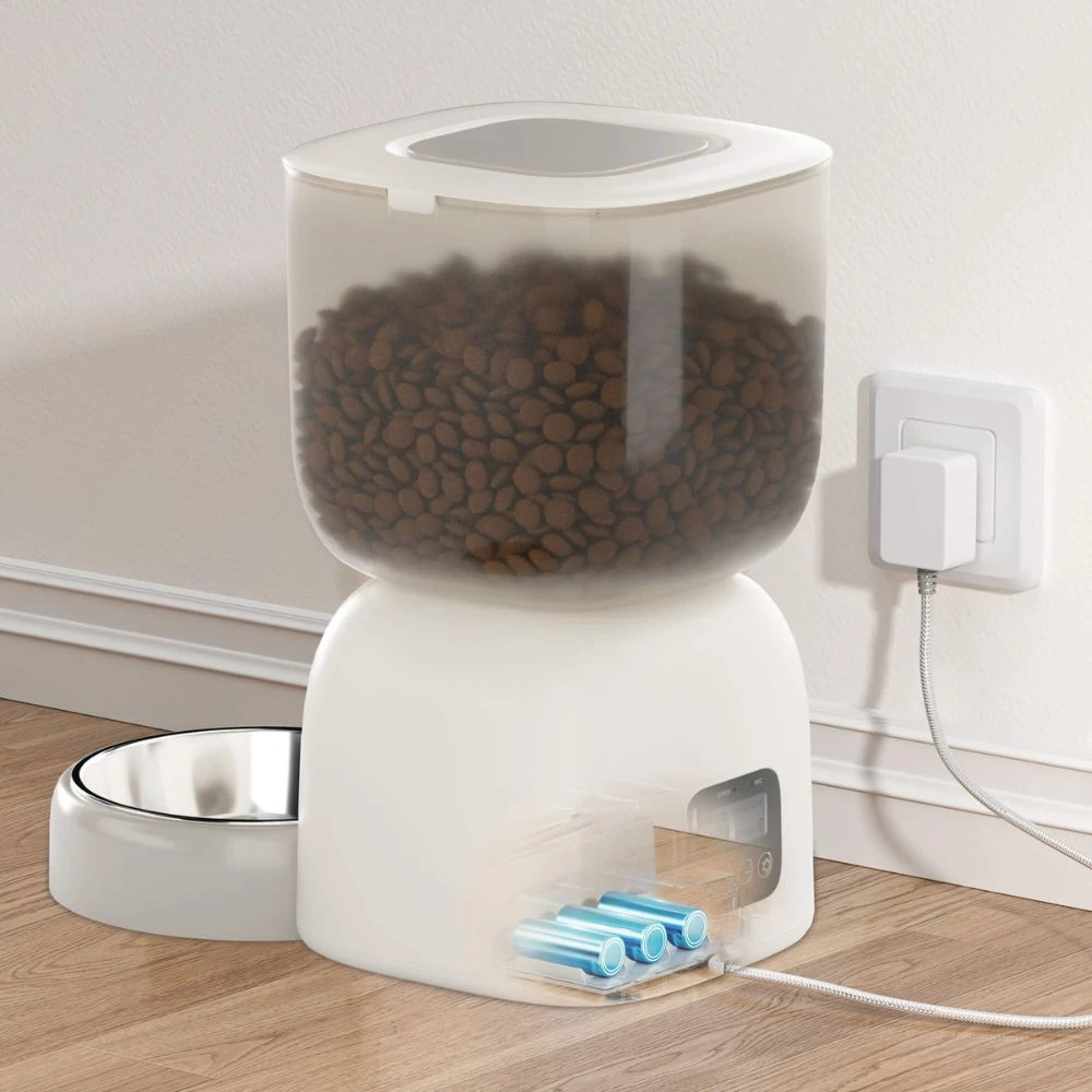 Please note: Feeder dispenses dry food only. Don’t use with wet or canned food. Each portion should have less than 20% freeze-dried food. For indoor use only. Video user manual available here.