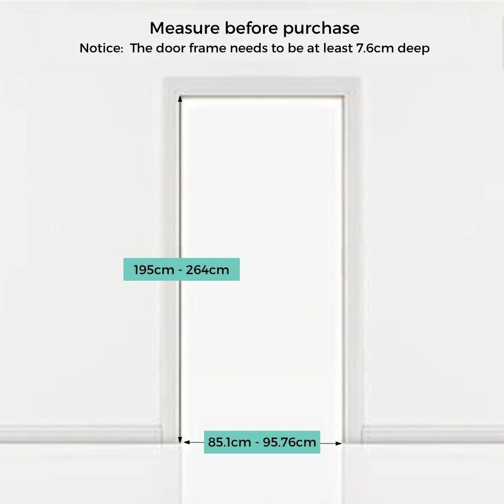 - Adjustable height rods suitable for doors between 195cm-264cm
