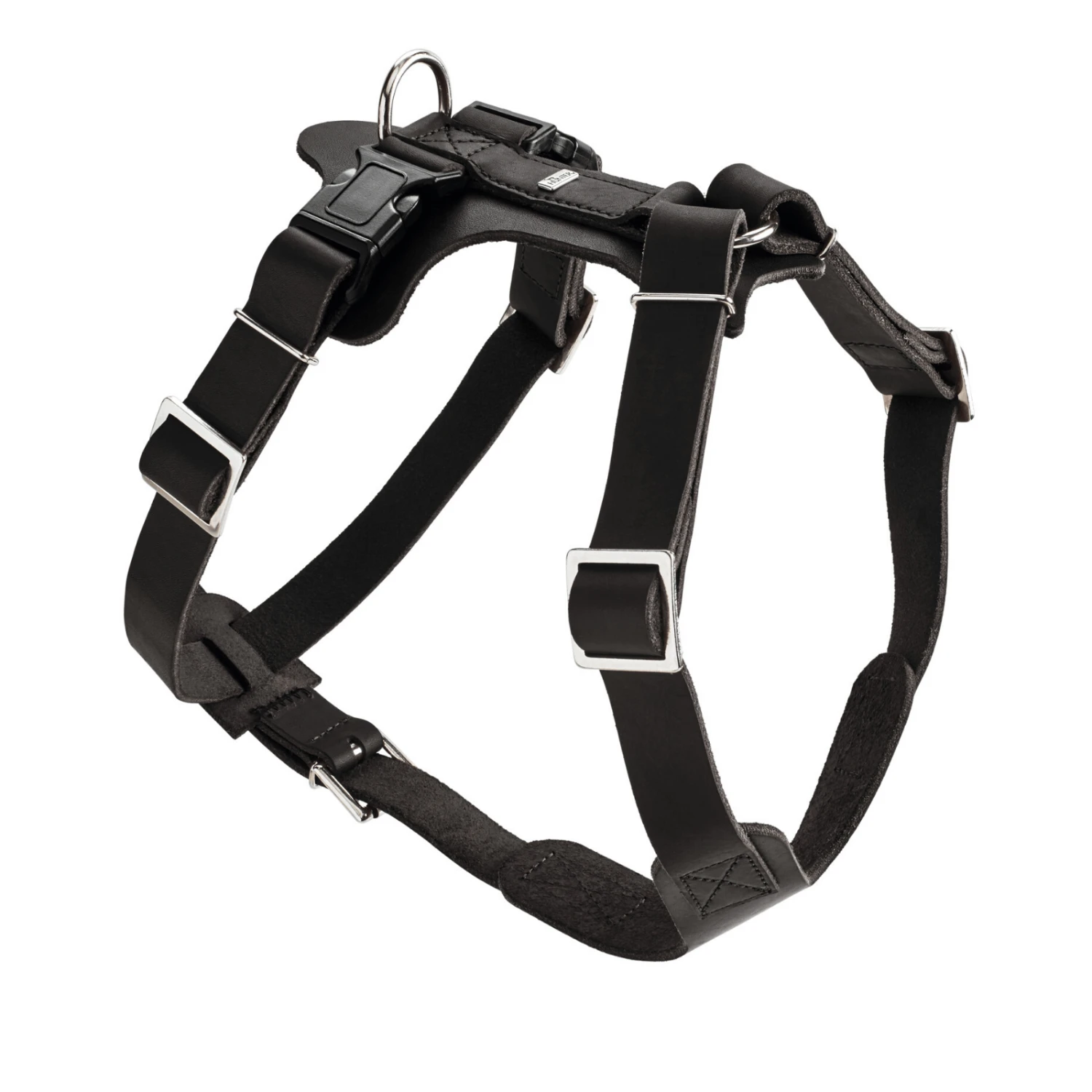 The Hunter Aalborg leather harness is available in two different colours and goes perfectly with Hunter’s 3-way adjustable leather training leads.