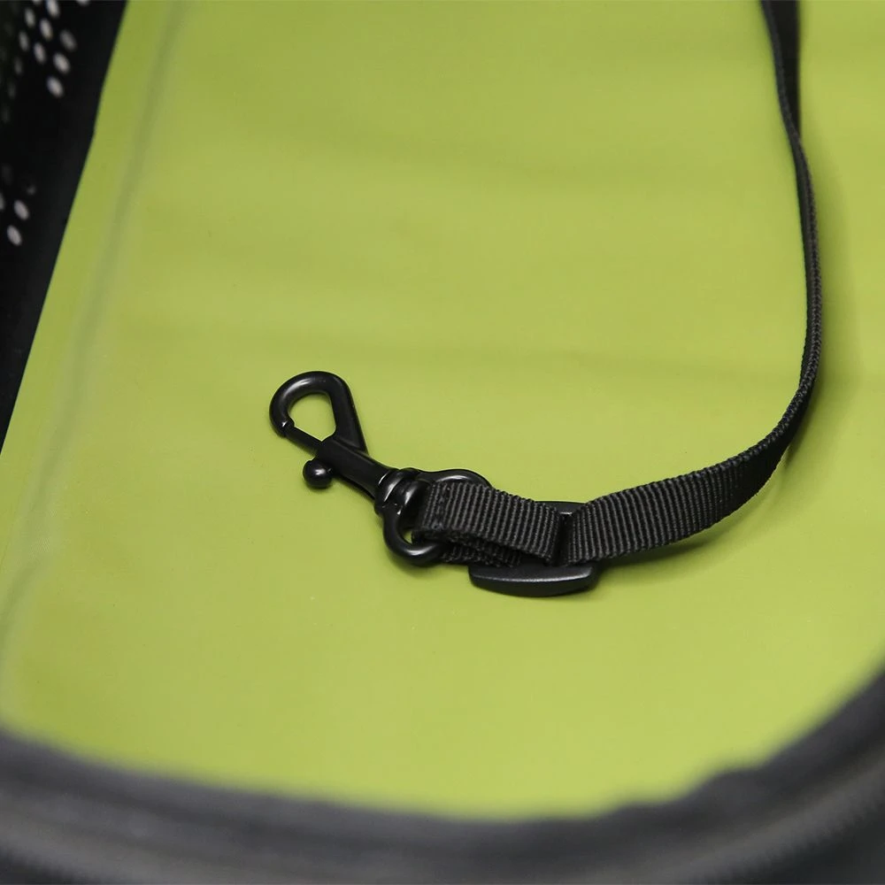 - An auto-locking zipper and safety tether prevent pets from escaping