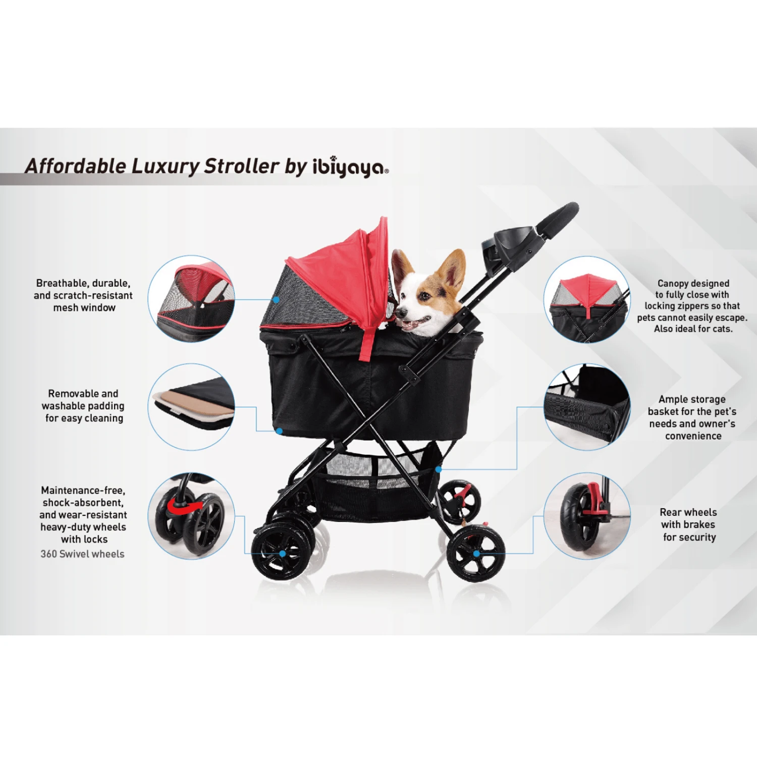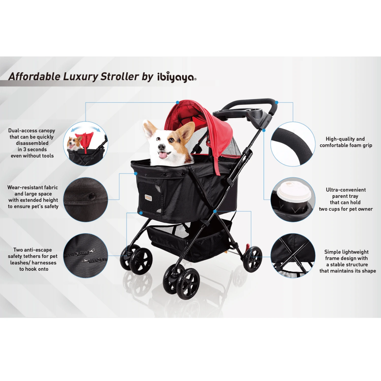 Pet Pram for Dogs & Cats – Ibiyaya Easy Stroller Rouge