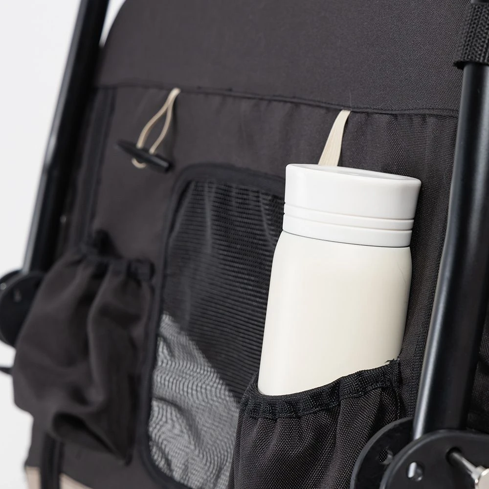 - One-touch buckle:Â The buckle design of the opening allows for quick access to the interior. The top of the canopy can be fully opened for use as an open-top stroller.