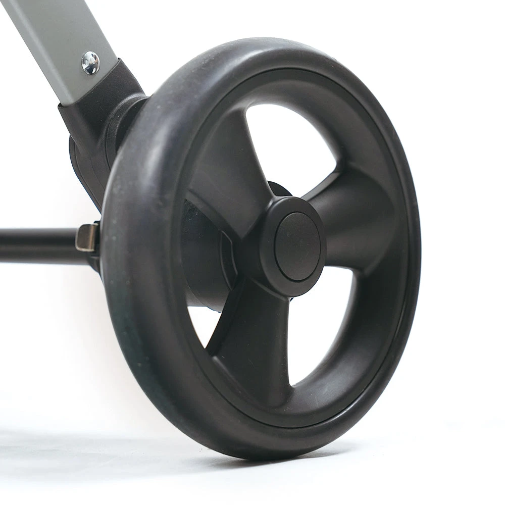 - Smooth EVA Wheels: Durable wheels with 360-degree swivel front wheels and rear brakes for stability on various terrains