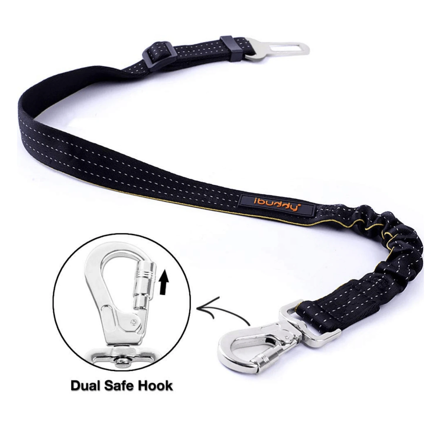 Dog Seat Belt for Cars with Locking Carabiner & Elastic Buffer