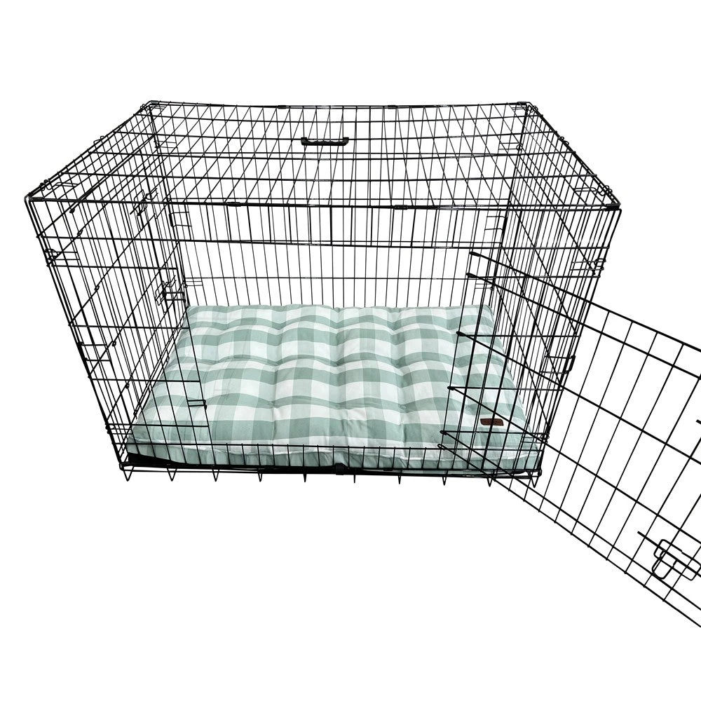 Add a touch of timeless style and comfort to your dog’s crate with our luxury crate mattress in a green buffalo check pattern. This thoughtfully designed mat features a durable, upholstery-grade cover with piped edges for a crisp, tailored finish that looks great in any room.