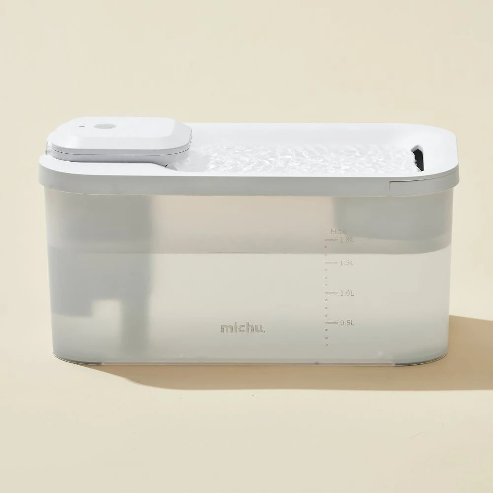 The water fountain will automatically release 20 seconds of water every 30 min or press the button for a manual release. The sound of trickling water will attract your cat’s interest and entice it to drink more and help prevent the diseases that are caused by insufficient water intake. A multi-layered filter provides cleaner and healthier water and it is recommended to replace the filter every 3-4 weeks. A low noise design makes it almost silent and the opaque container lets you keep an eye on the water level.Â