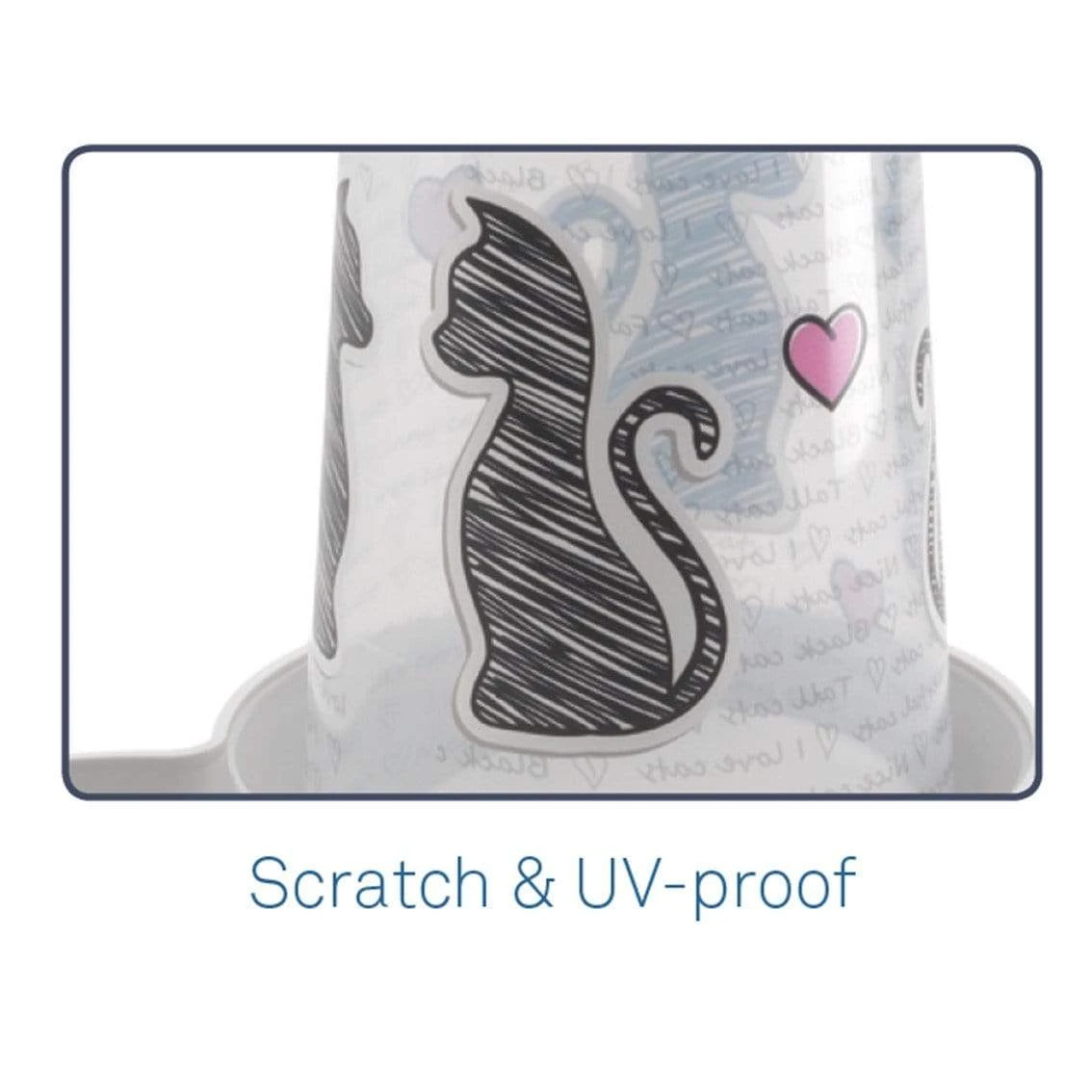 The design is easy to clean and dishwasher-safe for added convenience. The clear food storage container allows you to see exactly how much food or water is left in the container and the base slopes towards the front allowing the food to flow easier into the bowl. The ‘Cats in Love’ gravity feeder comes with a non-slip rubber bottom to prevent any skidding during feeding time and can be matched with a cat bowl in the same range (sold separately).