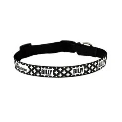 These personalised dog collars are sturdy and soft, made from high quality nylon they attach with a snap fastening plastic buckle. The dog collars come in four sizes all with adjustable lengths.