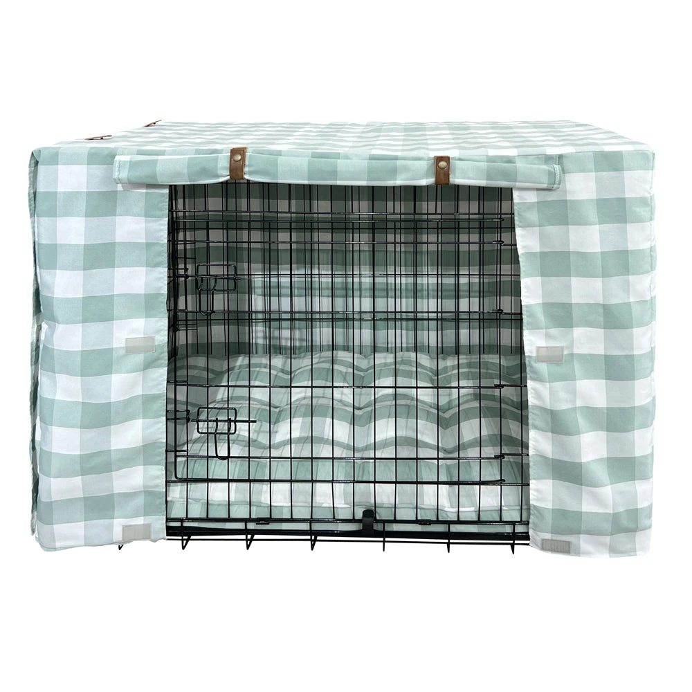 Designer Dog Cage Cover in Green Buffalo Check.