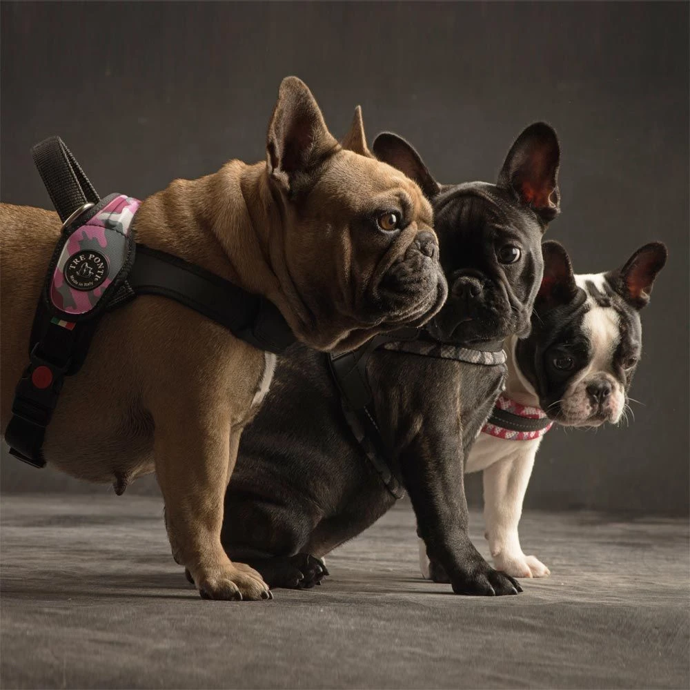 The thoughtful design of the Tre Ponti harnesses makes them easy to use and effortless to put on and take off. Just slip it over the head and buckle under the chest. Simple for you and completely comfortable for your dog. What’s more, the harness is designed for minimal impact on your pet, and the front legs are completely free, allowing total freedom of movement. Not bulky or heavy, just comfortable and easy for both you and your dog!